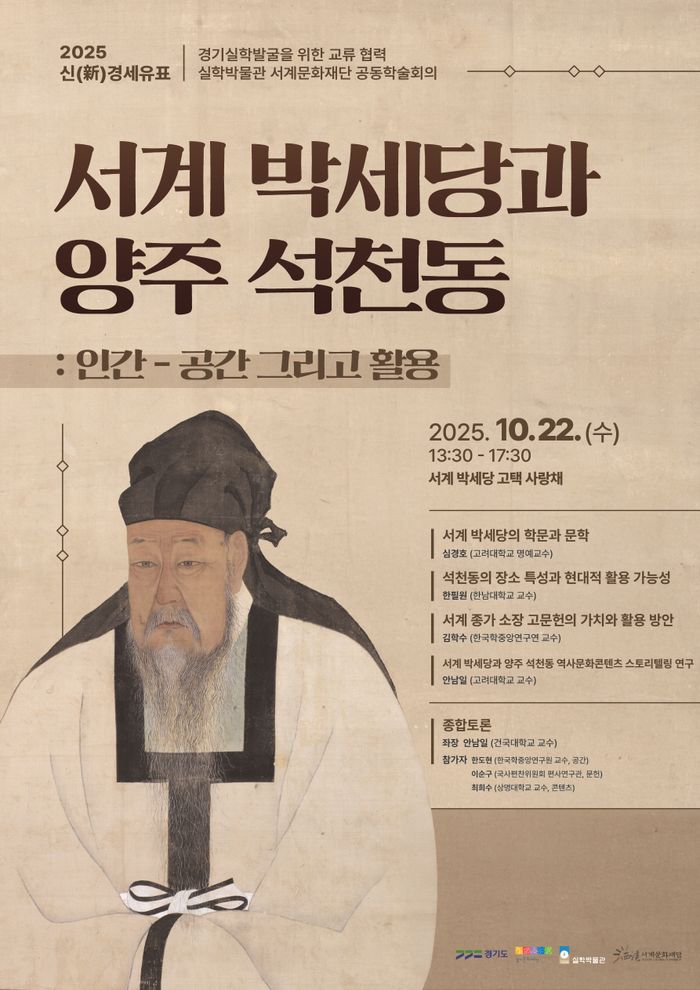 경기문화재단 실학박물관은 서계문화재단과 공동으로 오는 22일 서계 박세당 고택에서 '서계 박세당과 양주 석천동 –인간·공간 그리고 활용-' 학술회의를 개최한다고 14일 밝혔다.