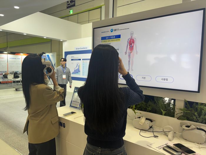 이날 관람객에게 가장 인기를 끈 곳은 직접 참여 가능한 ‘체험 부스’였다. 삼성바이오에피스는 노인성 황반변성 환자의 시야를 직접 체험해보는 코너를 마련했다. 전시장 방문객들은 특수 제작된 안경을 쓰고 흐릿하고 왜곡된 시야를 경험하며 질병의 심각성에 공감하는 모습이었다.