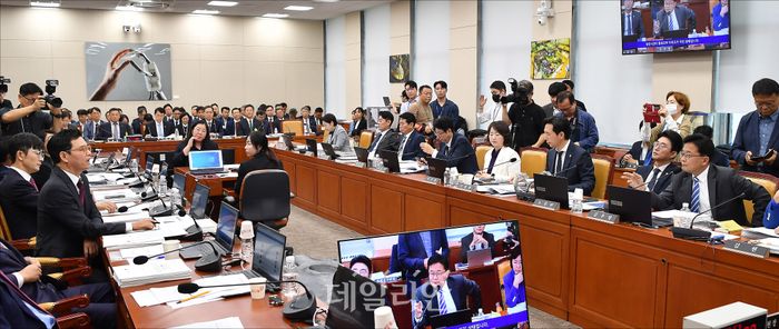 김우영 더불어민주당 의원이 16일 서울 여의도 국회에서 열린 국회 과학기술정보방송통신위원회의 원자력안전위원회 등에 대한 2025년도 국정감사에서 박정훈 국민의힘 의원의 문자 폭로 사태 관련 발언을 하고 있다.