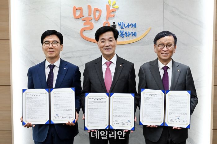 한국남부발전은 16일 밀양시청에서 밀양시, 한국재료연구원과 '나노융합기술 기반 탄소저감·지역경제 공동 활성화를 위한 업무협약(MOU)'을 체결했다.