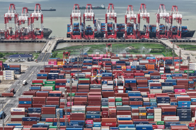 지난 13일 중국 상하이의 한 컨테이너 항만. ⓒAP/뉴시스