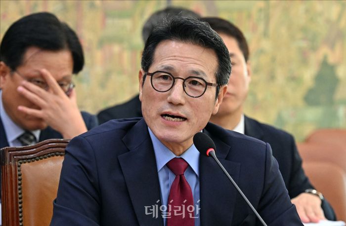정병국 한국문화예술위원회 위원장이 22일 서울 여의도 국회에서 열린 국회 문화체육관광위원회의 국립중앙박물관·한국문화예술위원회·국립중앙도서관 등에 대한 2025 국정감사에서 질의에 답변하고 있다.