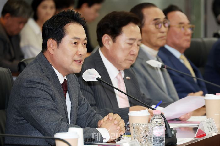 장동혁 국민의힘 대표가 22일 오후 서울 여의도 중소기업중앙회에서 열린 '장동혁 국민의힘 당대표 초청 중소기업인 간담회'에서 인사말을 하고 있다.