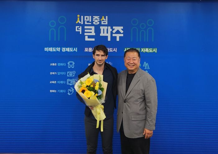 제라드 누스 파주 초대 감독과 김경일 파주시장. ⓒ 파주시민축구단