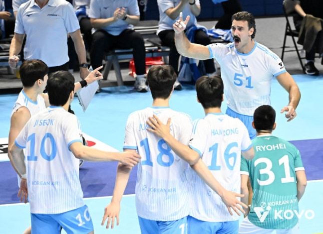 정지석은 이날 양 팀 통틀어 최다인 23점을 올렸고 러셀이 18점, 김민재가 12점으로 힘을 보탰다.
