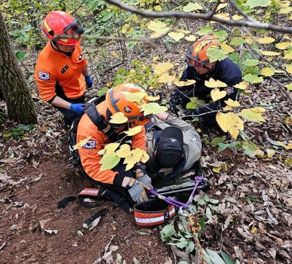 단양 패러글라이딩 야산 추락 현장ⓒ단양소방서 제공
