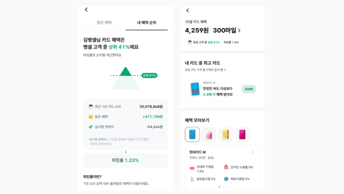 ‘이번 달 받은 카드 혜택’ 이용 고객 상위 1%, 평균 피킹률5%