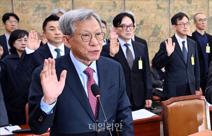 이억원 금융위원장이 20일 서울 여의도 국회에서 열린 국회 정무위원회의 금융위원회 등에 대한 2025 국정감사에서 증인선서를 하고 있다.