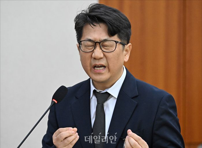 문지석 광주지검 부장검사가 23일 서울 여의도 국회에서 열린 국회 법제사법위원회의 서울고등검찰청·수원고등검찰청·서울중앙지방검찰청 등에 대한 2025 국정감사에서 의원 질의에 답하고 있다.