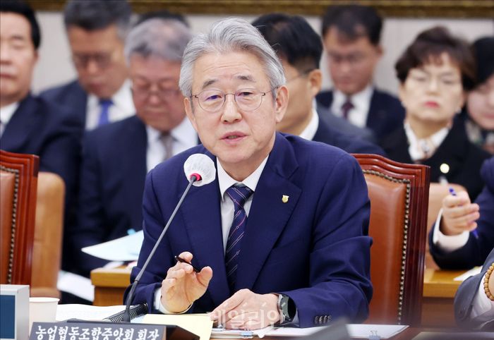강호동 농협중앙회장이 24일 서울 여의도 국회에서 열린 국회 농림축산식품해양수산위원회의 농협중앙회·한국마사회 등에 대한 2025 국정감사에서 질의에 답변하고 있다.