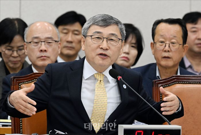 정근식 서울시교육감이 20일 서울 여의도 국회에서 열린 국회 교육위원회의 서울·경기·인천 교육청 등에 대한 2025 국정감사에서 질의에 답변하고 있다.