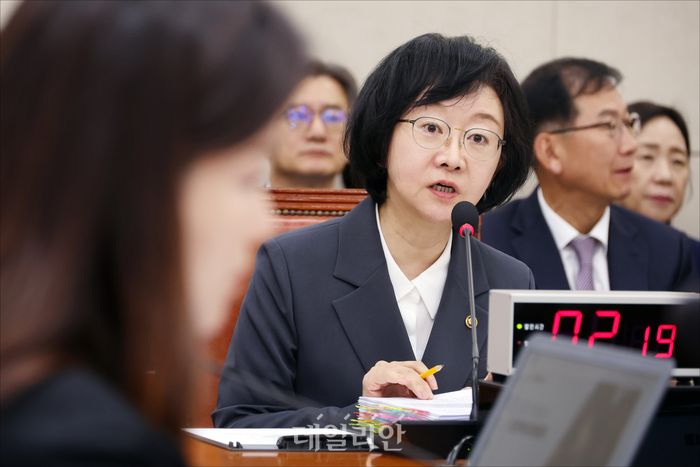 오유경 식품의약품안전처장이 21일 서울 여의도 국회에서 열린 국회 보건복지의원회의 식품의약품안전처 등에 대한 2025 국정감사에서 질의에 답변하고 있다.