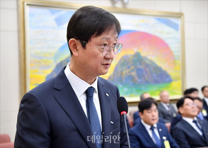 이찬진 금융감독원장이 21일 서울 여의도 국회에서 열린 국회 정무위원회의 금융감독원 등에 대한 2025 국정감사에서 업무보고를 하고 있다.
