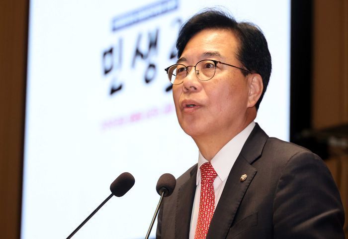 송언석 국민의힘 원내대표가 26일 오후 서울 여의도 국회에서 열린 의원총회에서 발언을 하고 있다. ⓒ 뉴시스