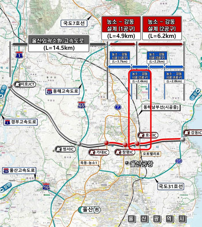 농소-강동 도로개설공사는 울산시 역대 최대 규모의 도로사업 중 하나로, 향후 울산외곽순환도로와 연결돼 울산 지역 동서 간 교통 흐름 개선에 크게 기여할 전망이다.