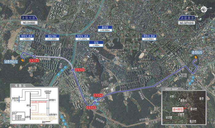 154kV 남춘천-춘천 전력구공사 노선도.ⓒ두산건설