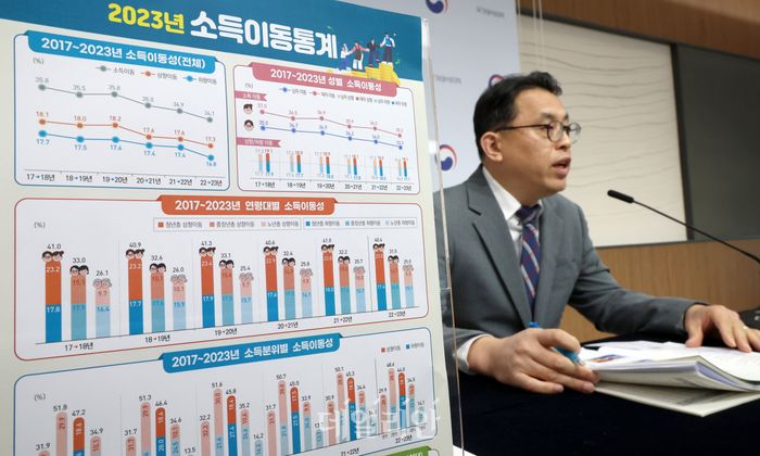 최바울 국가데이터처 경제사회통계연구실장이 27일 세종시 정부세종청사에서 2023년 소득이동통계 결과를 발표하고 있다. ⓒ뉴시스