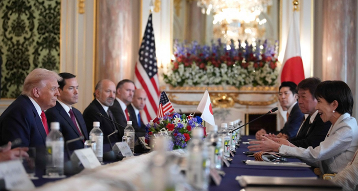 도널드 트럼프 미국 대통령과 다카이치 사나에 일본 총리가 28일 도쿄 모토아카사카 영빈관에서 미·일 정상회담을 시작했다고 교도통신이 보도했다.
