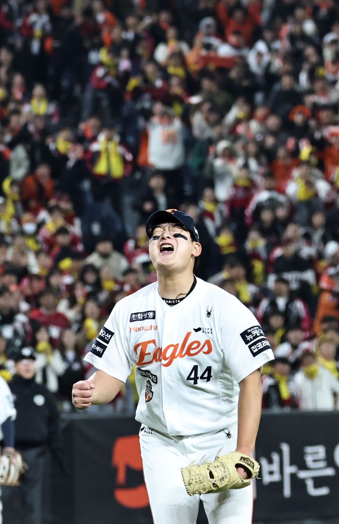 경기를 끝내고 포효한 마무리 김서현. ⓒ 연합뉴스
