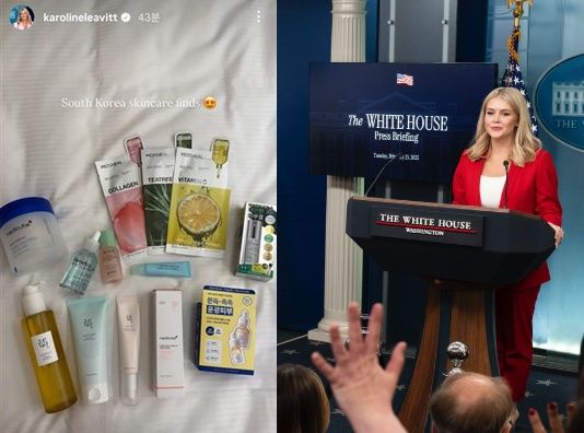 29일 레빗 대변인은 자신의 소셜미디어(SNS)에 "한국 스킨케어 추천템들'(South Korea skincare finds)이라는 설명과 함께 한 장의 사진을 게재했다.