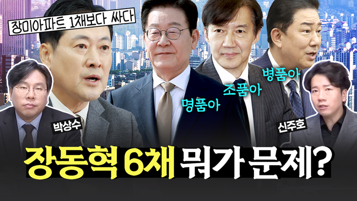 ‘나라가TV’의 패널 박상수 국민의힘 전 대변인은 “요즘 부동산 유튜브에서는 이재명 대통령의 아파트를 ‘명품아’, 조국 조국혁신당 비상대책위원장 관련 단지를 ‘조품아’, 김병기 민주당 원내대표의 장미아파트를 ‘병품아’라고 부른다”며 “이른바 ‘똘똘한 한 채’를 가진 민주당 인사들이 진짜 투기 구조를 만들었다”고 꼬집었다.