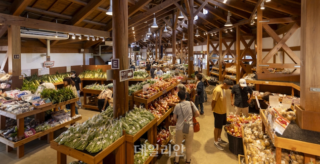 일본 가와바 마을 파머스 마켓 현장 모습. 주민 약 700세대가 직접 텃밭에서 기른 농산물을 아침마다 마켓에 가져와 진열·판매하고 있다. 250만명 방문객이 다녀갈 정도로 유명하다. ⓒ가와바 마을 홈페이지