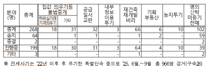 정부는 “국무조정실과 관계부처는 범부처 추진단을 중심으로 서민과 청년들의 생활을 위협하는 부동산 범죄 행위에 대해 무관용으로 엄정 대응하고 부동산 불법행위의 근절을 위한 역량을 강화해 나갈 계획”이라고 강조했다.