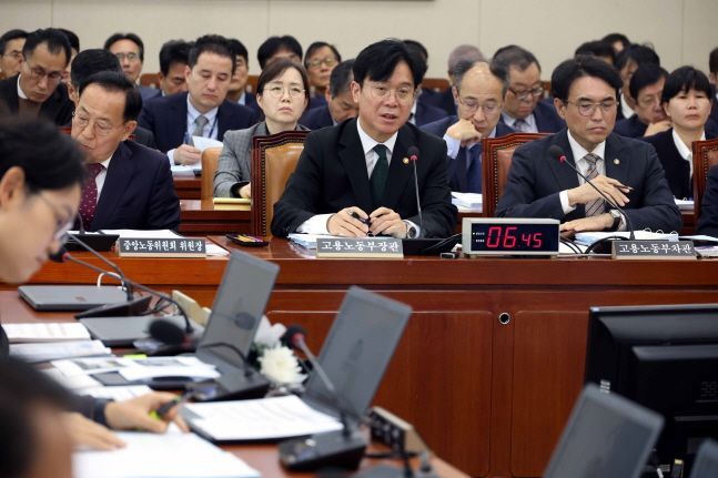 김영훈 고용노동부 장관이 30일 오전 서울 여의도 국회 기후에너지환경노동위원회에서 열린 고용노동부 등 종합감사에서 의원 질의에 답변하고 있다.ⓒ뉴시스