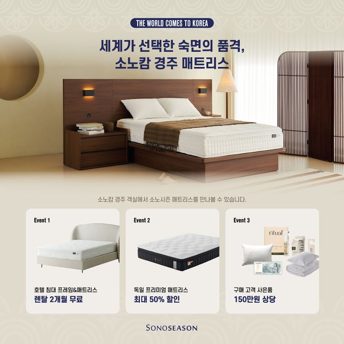 이를 기념해 소노시즌은 주요 국제회의 대표단이 체험한 침대를 소비자들이 합리적으로 마련할 수 있도록 특별 프로모션을 전개한다.