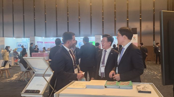 윤원석(오른쪽 2번째)인천경제자유구역청장이 30일 서울 파르나스 호텔에서 열린 ‘인베스트 코리아 서밋 2025’에서 참가자와 대화를 나누고 있다. ⓒ 인천경제자유구역청 제공