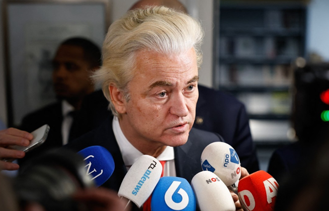 네덜란드의 헤이르트 빌더르스 자유당 대표가 30일(현지시간) 선거결과 발표 후 기자회견을 하고 있다. ⓒ로이터/연합뉴스