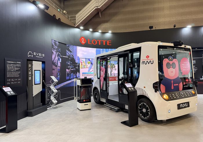 롯데이노베이트는 재팬 모빌리티 쇼 롯데관에서 실제 운영하는 모델과 동일한 운전석이 없는 셔틀 형태의 B형 자율주행셔틀과 메타버스, 전기차 충전기를 전시하고 소개했다.