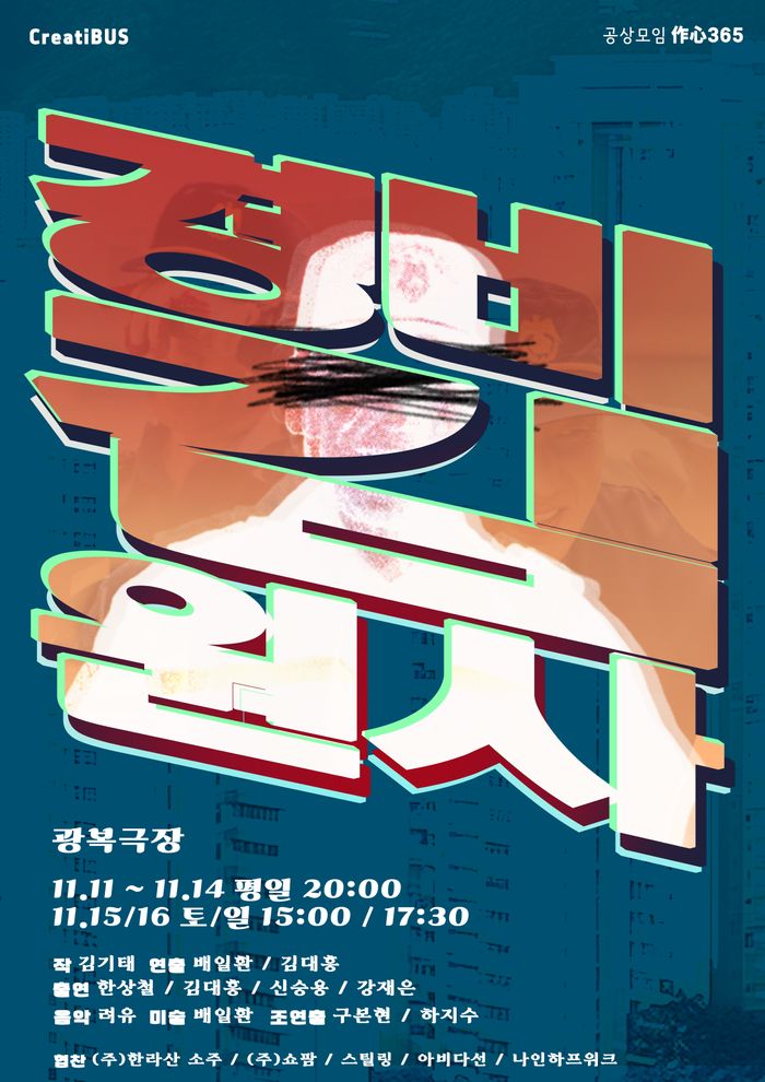 주로 드라마와 영화에서 활동한 한상철은 이번 연극이 첫 무대 연기 도전이다. 한상철은 “첫 무대 도전이고, 2인극이라는 점도 큰 부담으로 다가왔지만, 대본이 너무 재밌었고, 함께하는 김대흥 배우를 믿고 도전할 수 있었다”며 연극 도전 이유를 전했다. 20년이 넘는 배우 생활을 한 김대흥은 이번 연극이 첫 연출 도전이다. 평창올림픽 개막식 미술감독을 맡았고, 이번에 첫 연극에 도전한 배일환 연출과 ‘공동 연출’로 이름을 올렸다. 무대 위와 아래를 동시에 오가며 2인극을 완성시킨 셈이다.