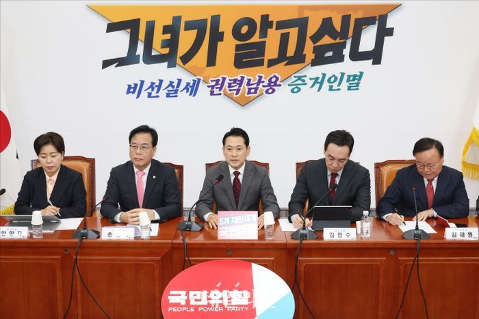 김도읍 정책위의장은 "법원은 판결문에서 지역주민이나 공공에 돌아갔어야 할 막대한 택지개발 이익이 민간업자에게 배분됐다며 배임죄 성립을 인정했다"며 "그렇기에 (민주당이) 피고인 이재명 한 사람을 구하려고 대법원장 사퇴, 검찰해체, 배임죄 폐지 등 헌정 질서를 문란케 하고 있다"고 주장했다.