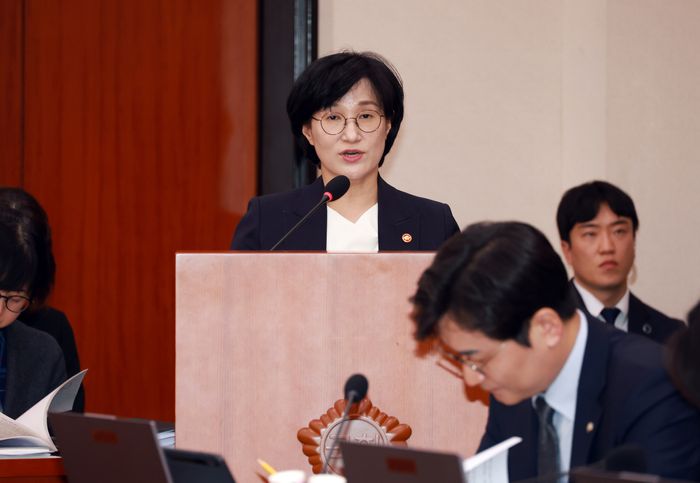 원민경 성평등가족부 장관이 4일 서울 여의도 국회에서 열린 성평등가족위원회의 성평등가족부 등 국정감사에서 업무보고를 하고 있다.ⓒ뉴시스