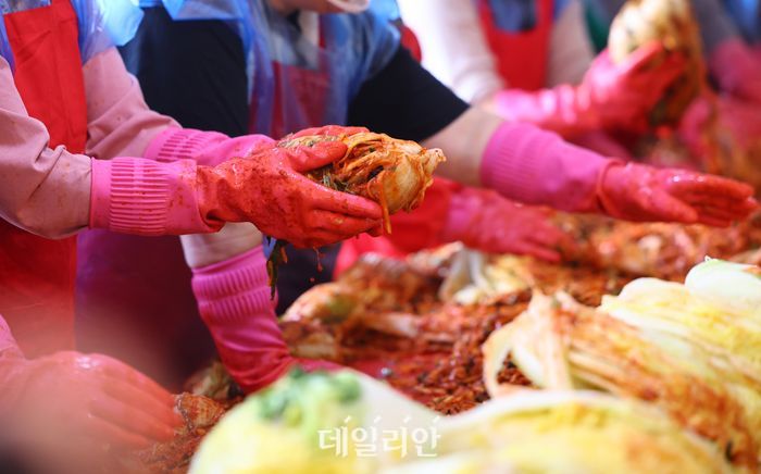 서울 송파구 마천2동주민센터 하부 주차장에서 사랑의 김장나누기 행사를 진행하고 있다.ⓒ뉴시스