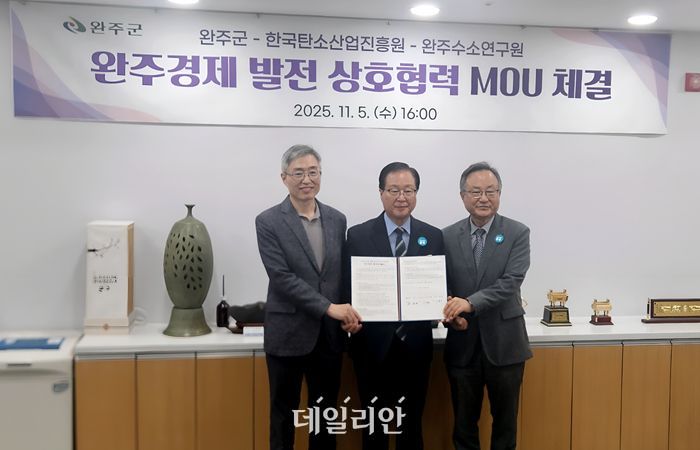 한국탄소산업진흥원은 5일 완주군, 완주수소연구원과 업무협약을 체결하고 수소·탄소 융복합 산업 생태계 구축에 나섰다고 6일 밝혔다.