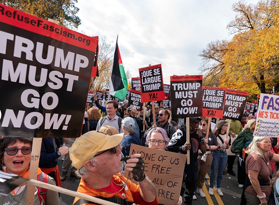 9일(현지시간) 미국 워싱턴DC에서 시위대가 셧다운(일시적 업무정지)에 반대하는 시위를 진행하고 있다. ⓒAP/연합뉴스