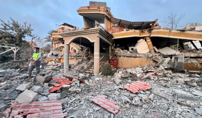 지난 6일 레바논 남부의 한 마을이 이스라엘군의 공습으로 파괴돼 있다. ⓒ신화/뉴시스