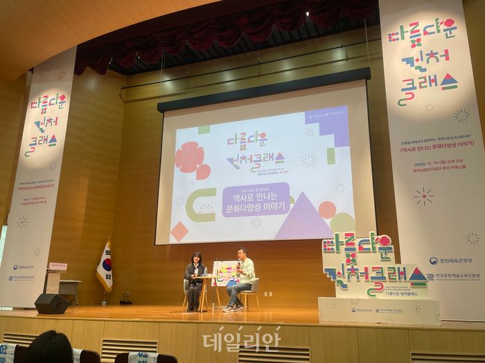 이날 강연은 최태성 강사의 '역사로 만나는 문화다양성 이야기'로 진행됐다. 유튜브 크리에이터 김겨울 작가가 사회를 맡았다. 문화다양성의 의미를 역사적 사례와 함께 풀어내며 주제 토크와 관객과의 대화 세션을 통해 참석자들이 직접 참여하고 공감하는 시간을 가졌다.