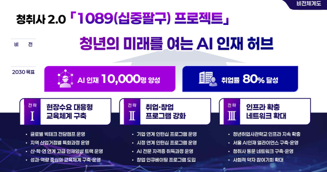 서울 모든 자치구에 1캠퍼스씩 총 25개 캠퍼스 조성을 마친 '청년취업사관학교'가 인공지능(AI) 대전환의 흐름에 맞춰 서울의 미래 경쟁력을 이끌 'AI인재 양성 허브'로 새롭게 도약한다.