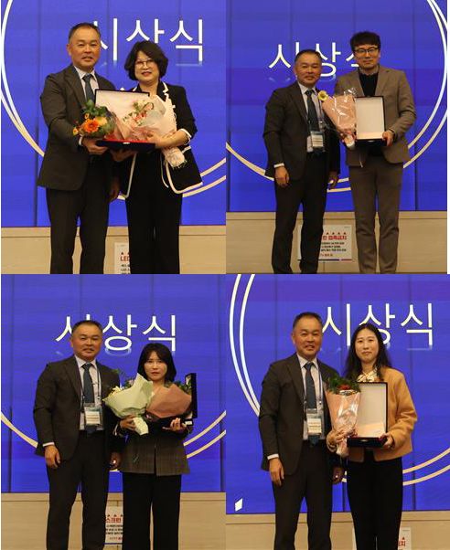 2025년 한국수산과학회 총회에서 수산기술혁신상을 받은 오현주 중앙내수면연구소장(왼쪽 위)과 사조수산대상 학술상을 받은 문성용 남해수산연구소 박사(오른쪽 위), 사조수산대상 신진학술상을 받은 김남리 아열대수산연구소 박사(왼쪽 아래), 이보람 고래연구소 박사(오른쪽 아래) 모습. ⓒ국립수산과학원