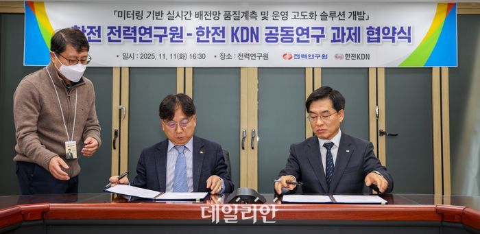 한전KDN은 한국전력과 11일 대전광역시 소재 전력연구원 본관동 소회의실에서 '미터링 기반 실시간 배전망 품질 계측과 운영 고도화 솔루션 개발'을 위한 공동연구 협약을 체결했다고 12일 밝혔다.