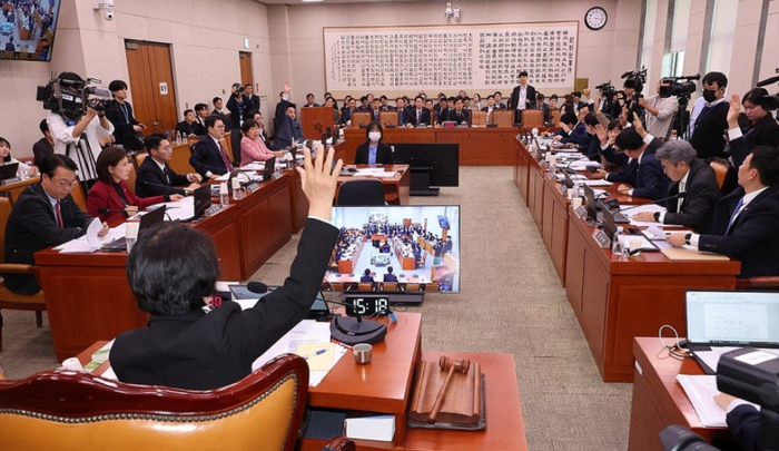 12일 서울 여의도 국회에서 열린 법제사법위원회 전체회의에서 여야 위원들이 담배사업법 일부개정법률안 등에 대한 대체토론 종결을 위한 표결을 하고 있다. ⓒ연합뉴스