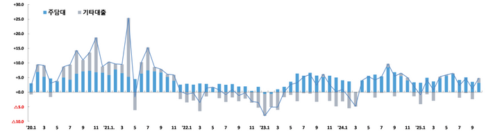 작년 동월(6조5000억원)과 비교하면 증가폭은 줄었지만, 전월(1조1000억원)보다 확대됐다. 당국은 “10·15 대책 이전 주택거래량 증가에 따른 시차 영향 가능성을 감안해 연말까지 변동성 확대에 경각심이 필요하다”고 평가했다.