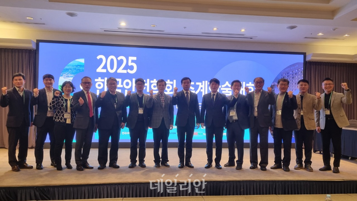 박종길 근로복지공단 이사장(왼쪽부터 일곱 번째)이 13일 제주에서 열린 ‘2025년 한국안전학회 추계학술대회’에서 개회 축사와 특별강연을 진행하고 참석자들과 함께 기념사진을 찍고 있다. ⓒ근로복지공단