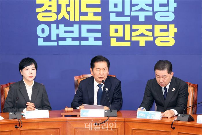 정청래 더불어민주당 대표가 10일 오전 서울 여의도 국회에서 열린 더불어민주당 최고위원회의에서 모두발언을 하고 있다.