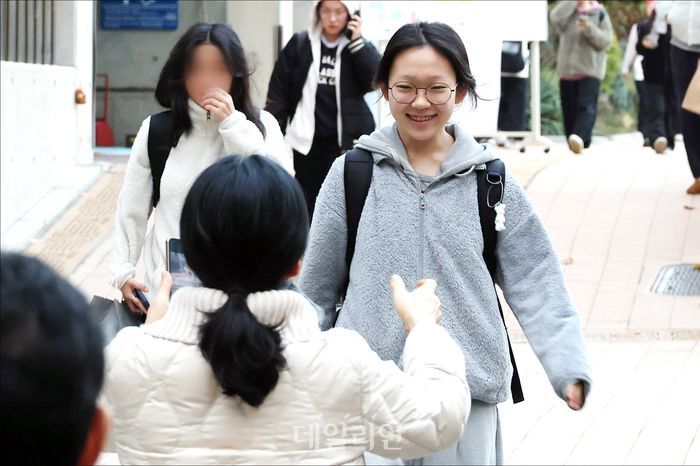 2026학년도 대학수학능력시험(수능시험)이 종료된 13일 오후 서울 영등포구 여의도여고 앞에서 시험을 마친 수험생이 학부모를 향해 환하게 웃으며 달려오고 있다.