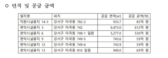 해당 필지들은 교통 접근성과 직주 근접 입지를 갖춘 마곡지구 내에 위치해, 실수요자와 투자자의 관심이 높을 것으로 기대된다.