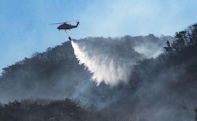 군포시는 재난문자를 통해 “수리산 슬기봉 인근 산불 발생. 인근 주민과 등산객은 대피 바란다”며 사전 대피를 권고했다.